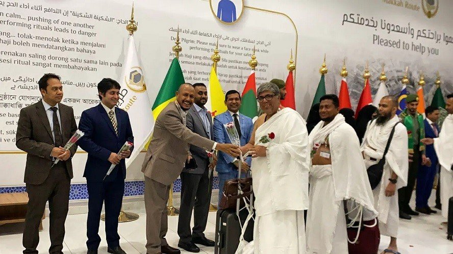 Bangladeshi pilgrims were welcomed at the airport by Bangladesh’s Ambassador to Saudi Arabia, Mohammad Delwar Hossain, and Counselor (Hajj) Mohammad Kamrul Islam. Pilgrims were greeted with flowers and presented with refreshment kits.